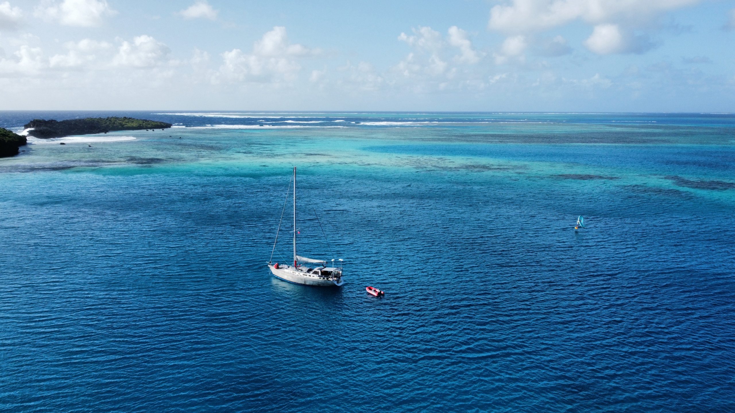 Ross and I braved the 5ish mile dinghy back to town (too shallow to take Kuaka) and retrieved his final lost bag. We moved again to an anchorage where we went ashore for a very pleasant Tongan feast with other yachties. I didn’t take any photos, but I do have more wingfoiling drone shots, so here is another one.